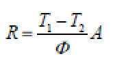 The thermal resistance, R, is calculated from a knowledge of q, A and Delta(T) if the appropriate