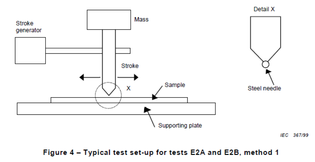 The abrading edge shall be a steel needle with a diameter of 1 mm or as specified in the detail