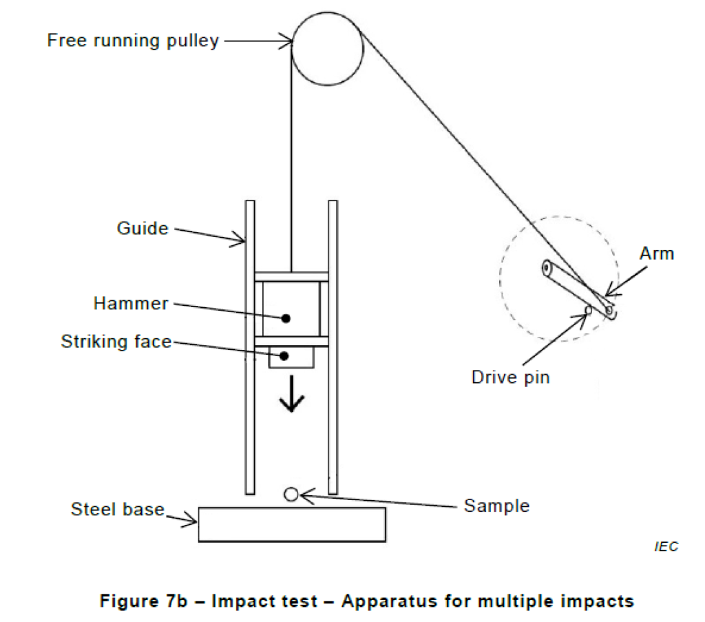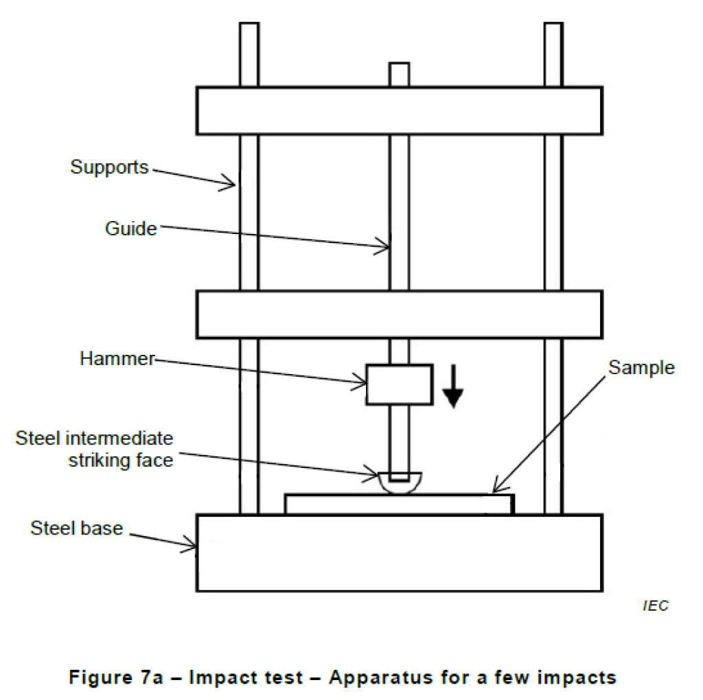 The apparatus shall allow an impact to be imparted to the cable sample which is fixed to a flat