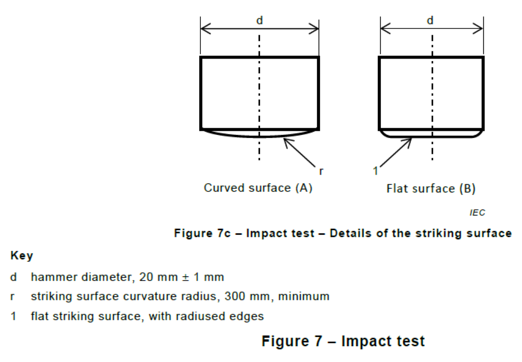 The striking surface shall either be flat or have a curved surface with curvature radius of no