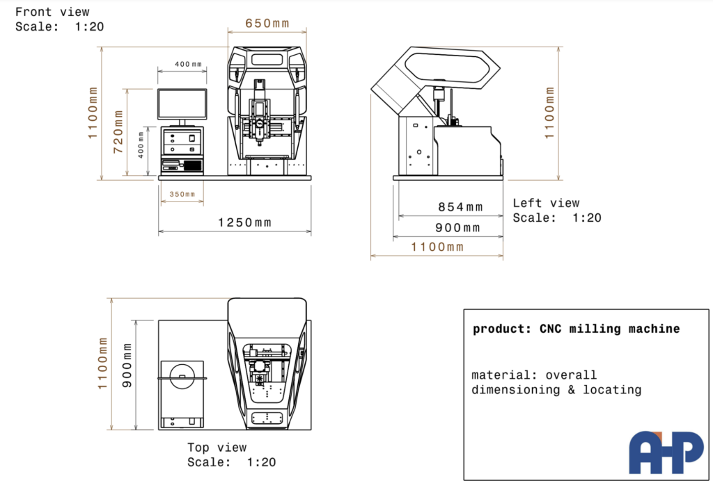 The AHP Precision CNC Milling machine (computer-controlled) consists of a base frame with a linear movement milling top. Three axes (X, Y, Z) are available. The working area is suitable for all types of dumbell-shaped samples, as per standards such as ISO 6259 for pies.